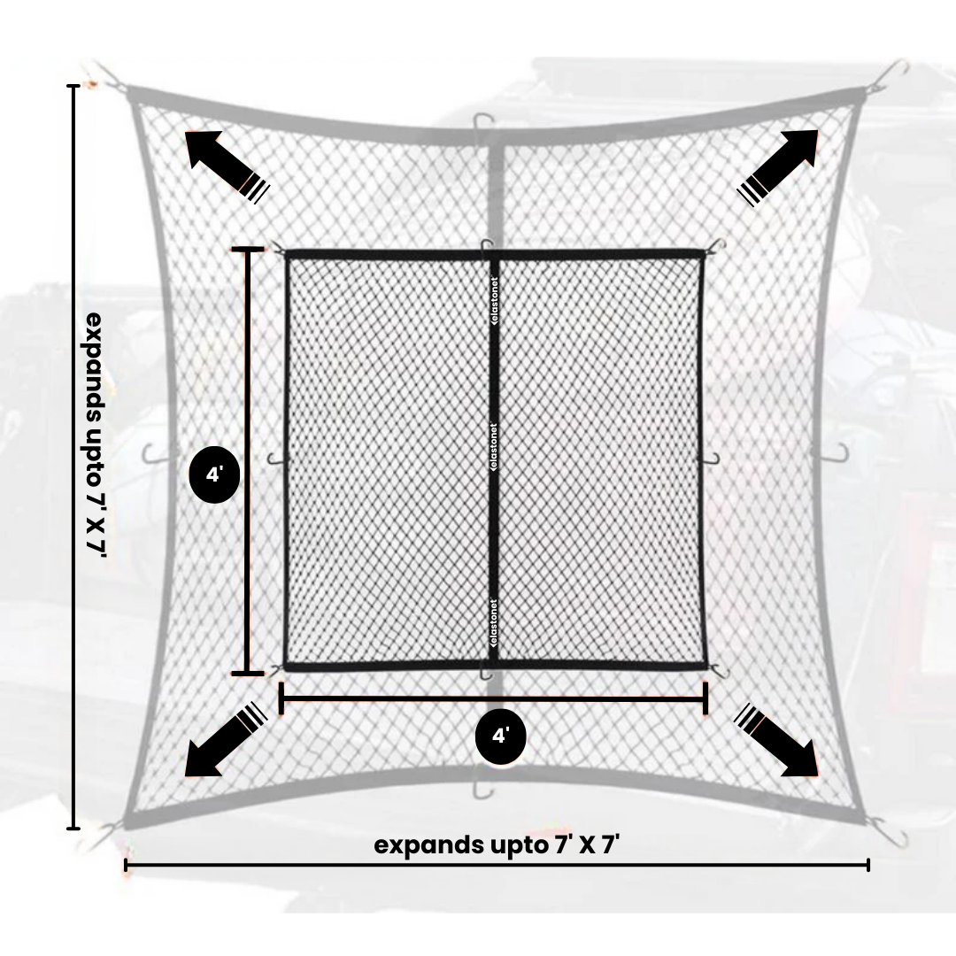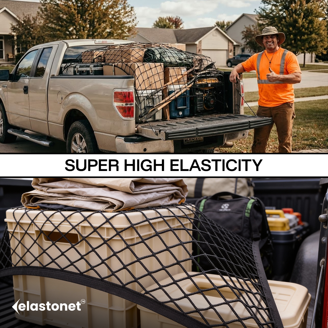 Elastonet delivers unmatched flexibility, easily stretching to nearly double its size for maximum coverage. Stop switching nets this massive expansion secures everything from your small toolbox to the bulkiest furniture with one versatile net.